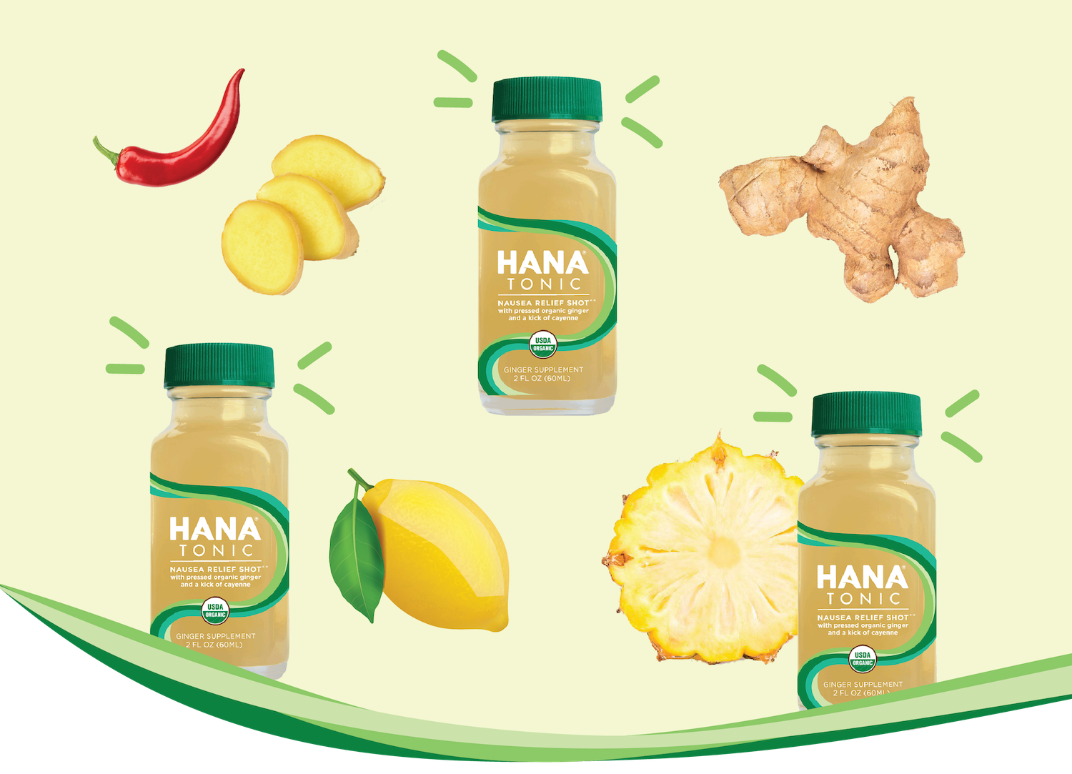 The benefits of Hana Tonic go far beyond occasional nausea relief. By incorporating our delicious blend of powerful ingredients like ginger, lemon, pineapple, and cayenne into your regular health regime, you can ensure every day is off to a great start.
